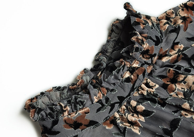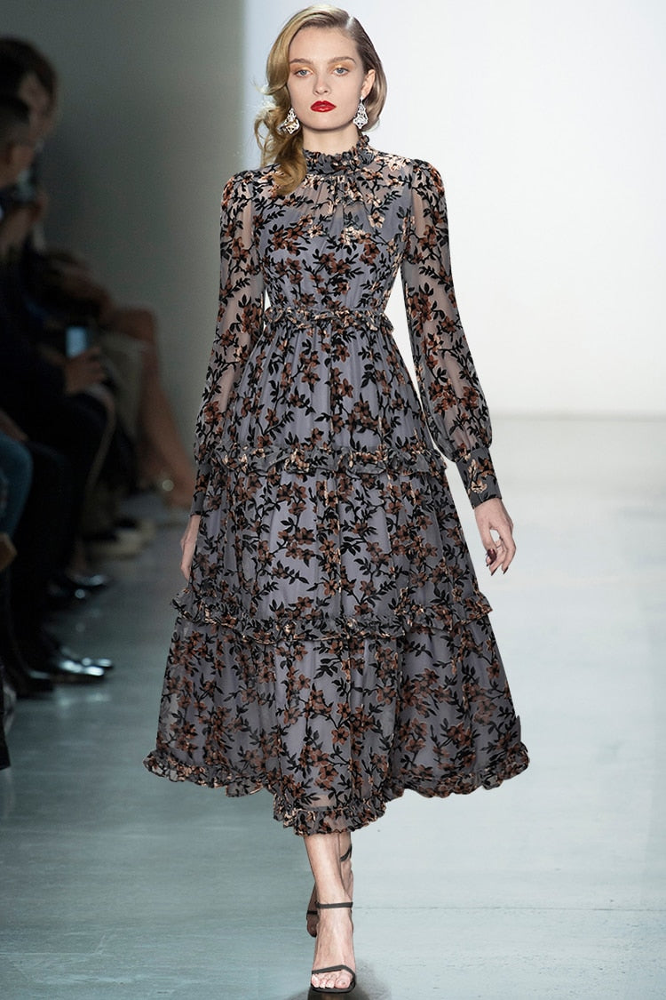 The Leela Flocking Dress combines a feminine look with breathable fabrics and delicate floral details. Finished with a tiered skirt and long lantern sleeves, stand neckline, an elegant midi dress will make a lasting impression at any event. Style with delicate pair of heels for a timeless classic look.
