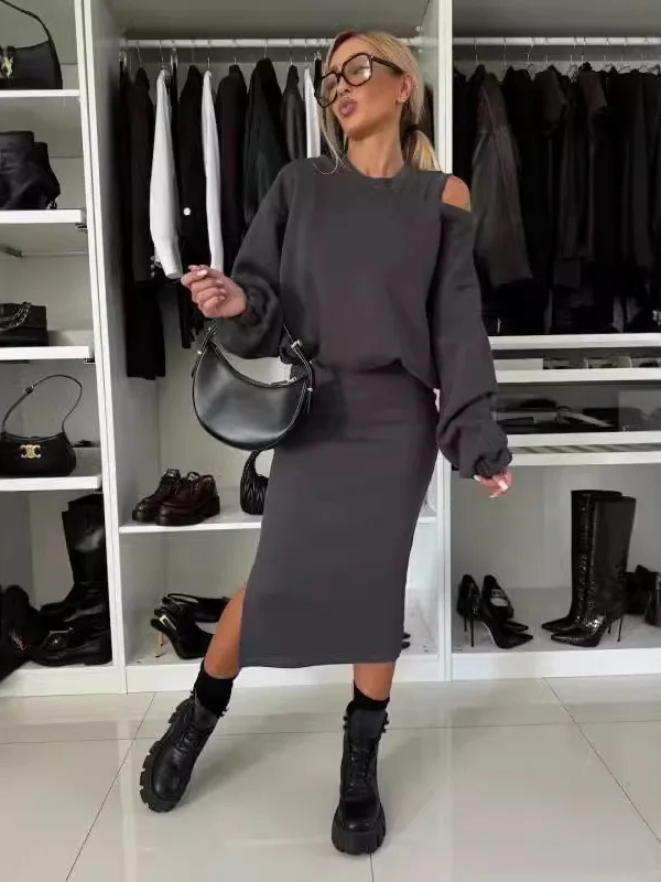 Prepare for the cold days with the Nicole Dress, a perfect combination of an elegant midi dress and a warm sweater. This set not only offers comfort, but also creates a stylish and coordinated look, ideal for both casual and formal occasions.