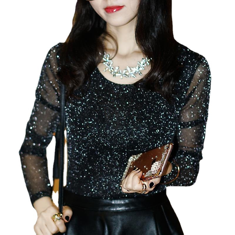Product information: Pattern: solid color Fabric name: Mesh Color: [Velvet] high collar dark blue, [Velvet] high collar purple, silver [fine] peacock blue, silver [fine] Black Main fabric composition: Spandex Style: slim fit Sleeve length: long sleeve