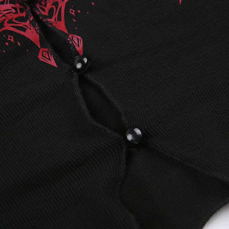 Take a risk with our unique Dark Bat Two-Piece Top! 🦇 Featuring a powerful red graphic bat design, you'll make a bold statement wherever you go! Unleash your adventurous side and be the star of the show.