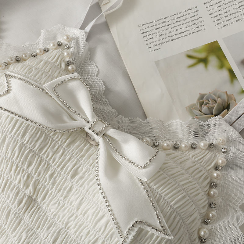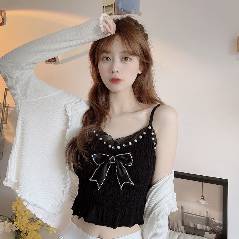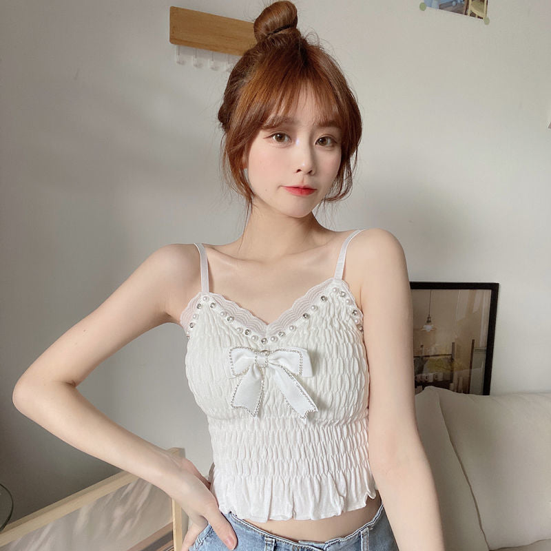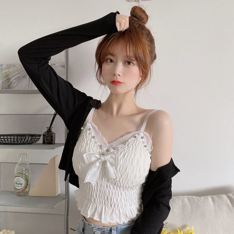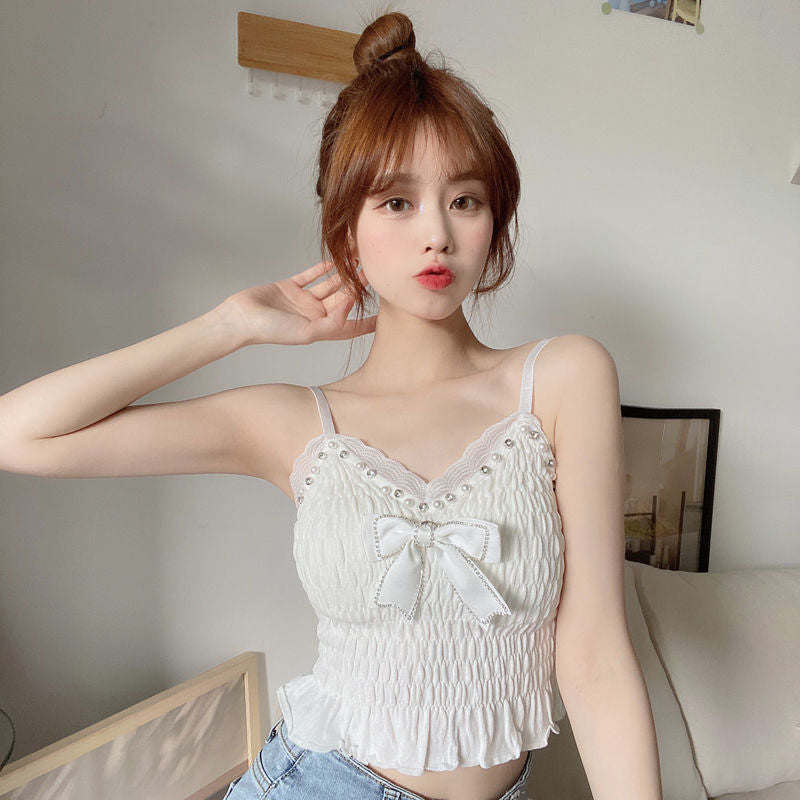 Dazzle in this Jeweled Bow Cami Crop Top!