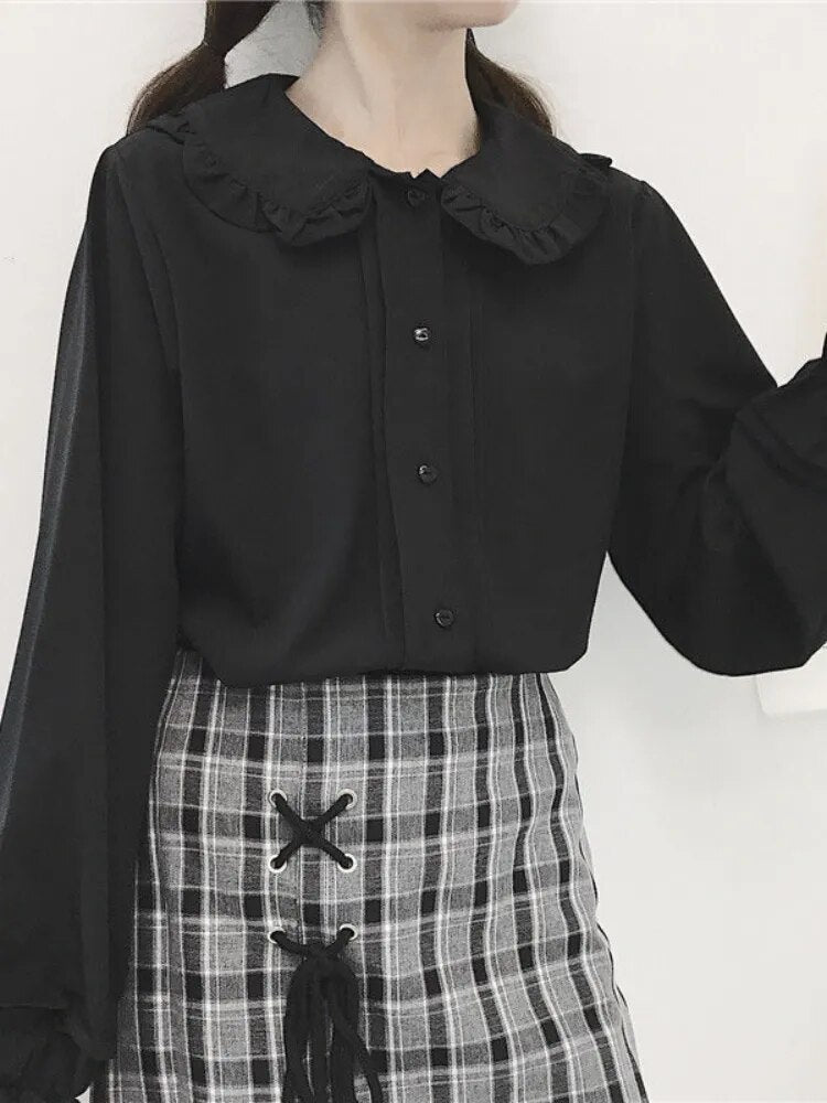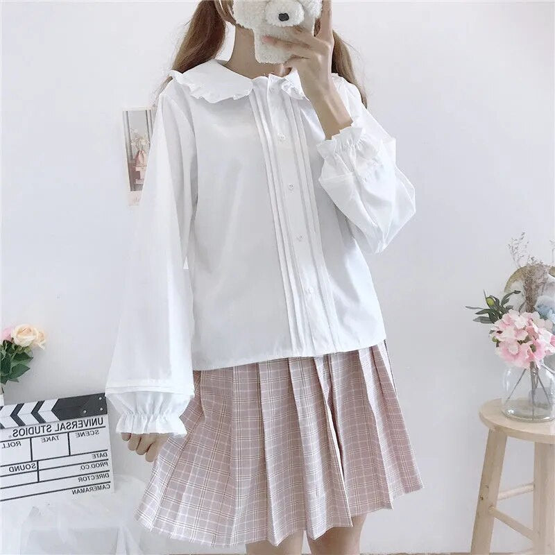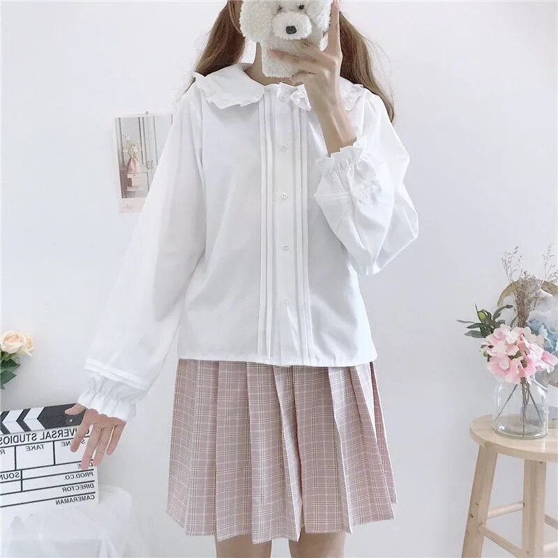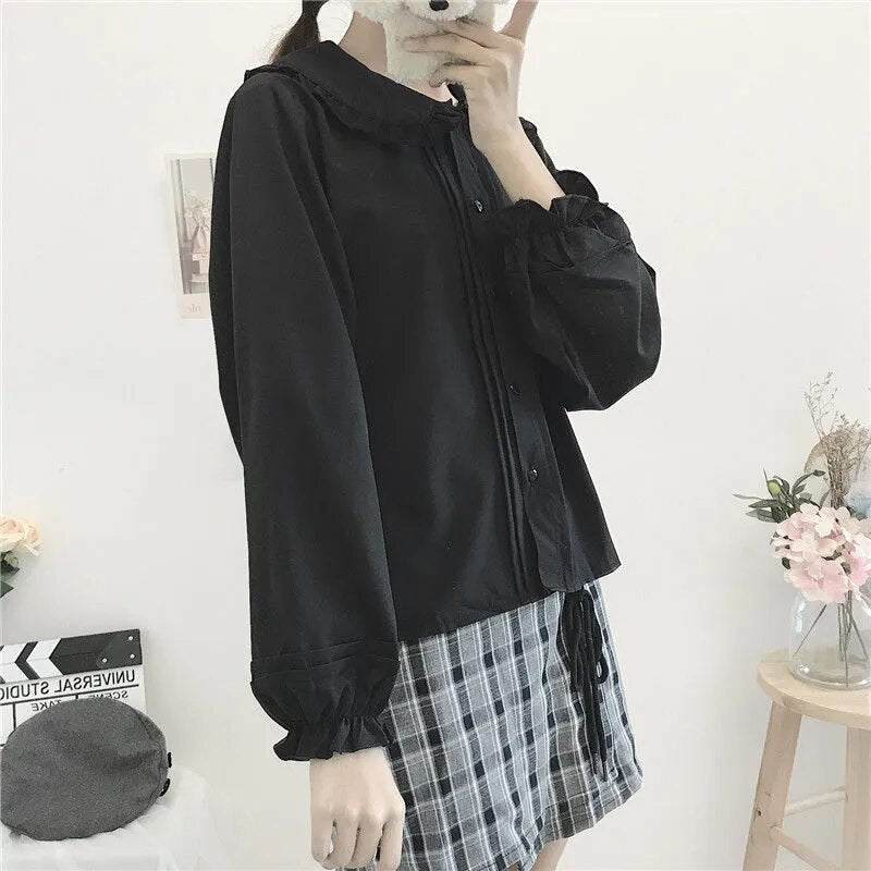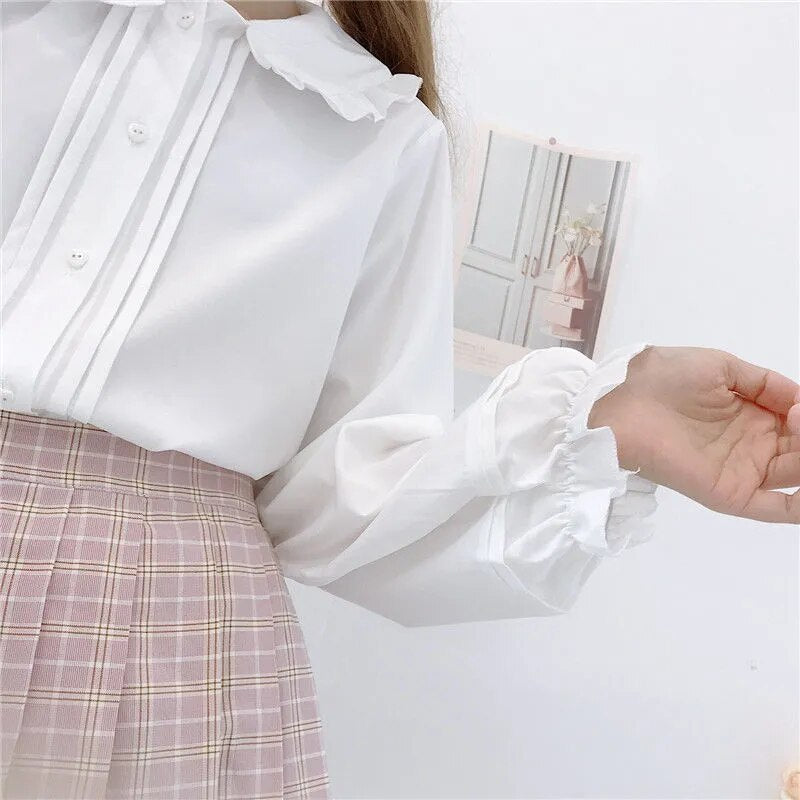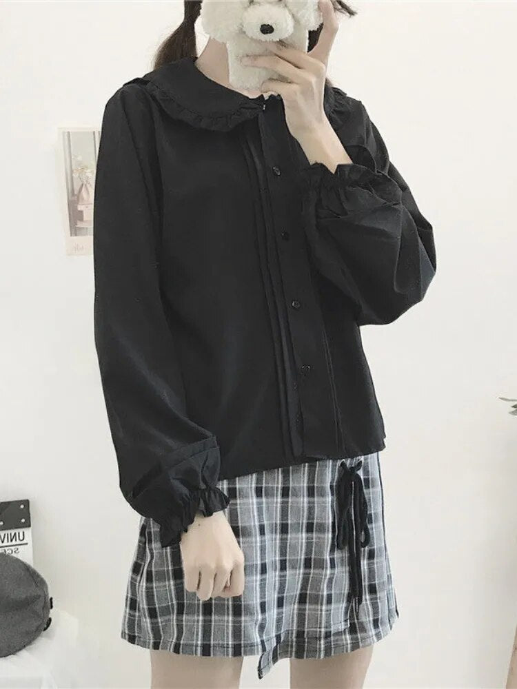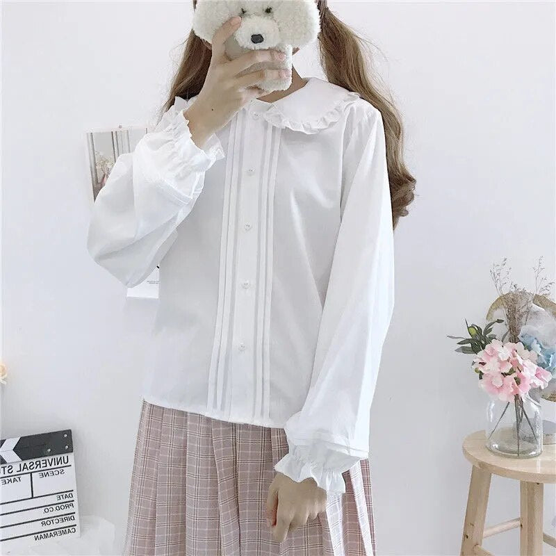 Feel extra kawaii in this adorably cute Kawaii Long Sleeve Peter Pan Collar Blouse! With a Peter Pan collar, long sleeves, and ruffles, you'll be looking sweet as can be! Make even Peter Pan jealous of your style! 🧚♀️