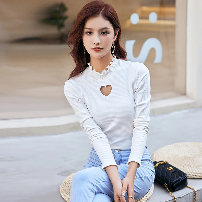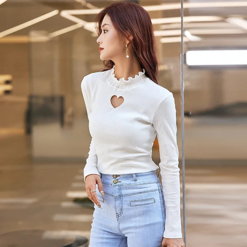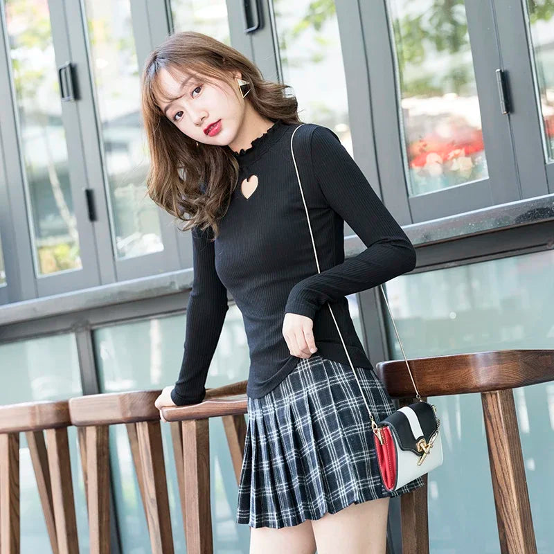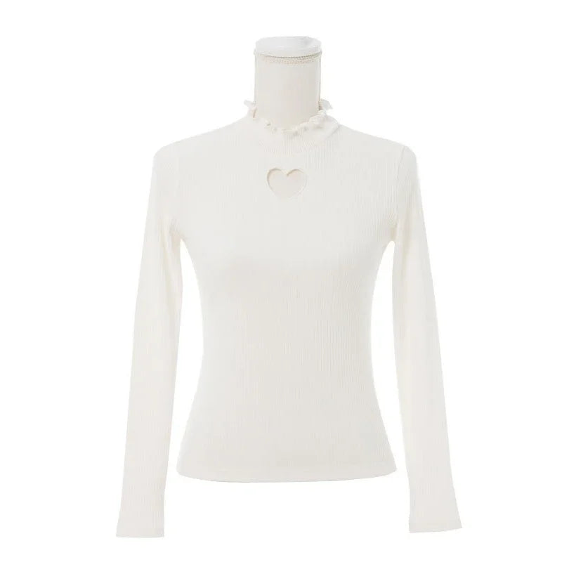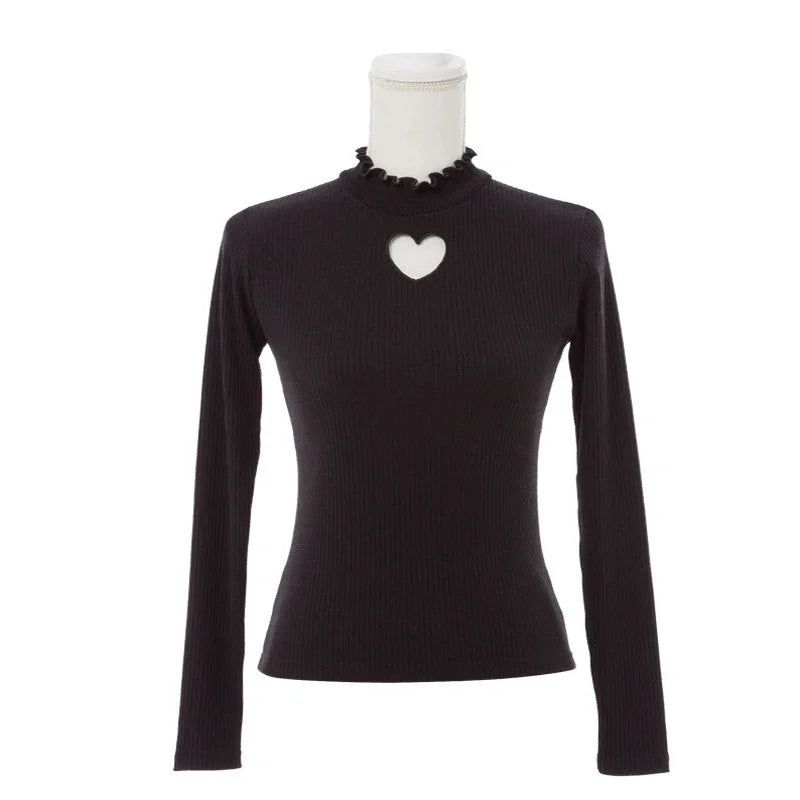 Look cute and cozy in this Open Heart Long Sleeve Top! With its ruffled turtleneck and charming cut-out heart, it's perfect for rocking a sweet yet sassy look! 🤍🖤