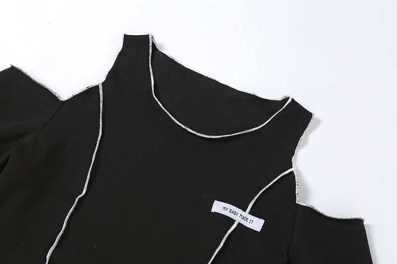 Try not to give them the cold shoulder in this Patchwork Open Shoulder Crop Top!