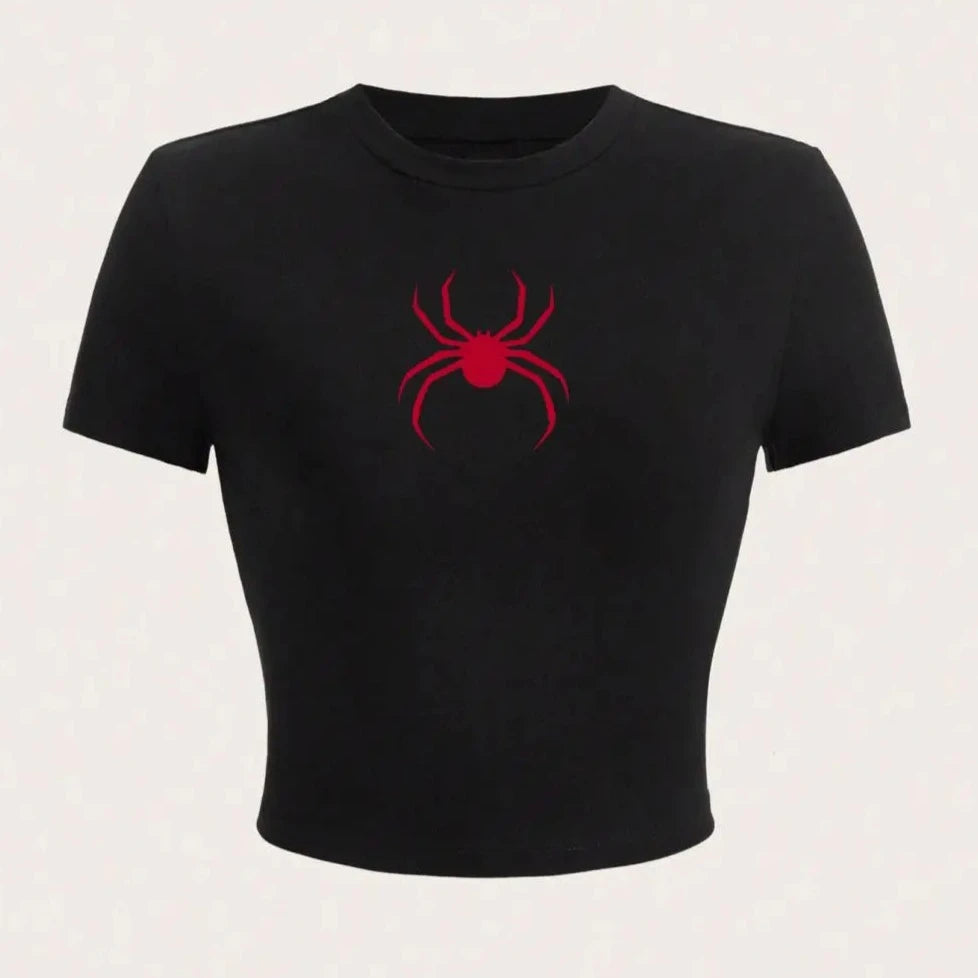 Unleash your inner superhero with this Red Spider Crop Top! The iron-on spider print adds a touch of danger to your outfit. Simple, yet bold, this top is perfect for those who dare to make a statement. Get yours now and become a cute and daring fashion icon! 🕷️