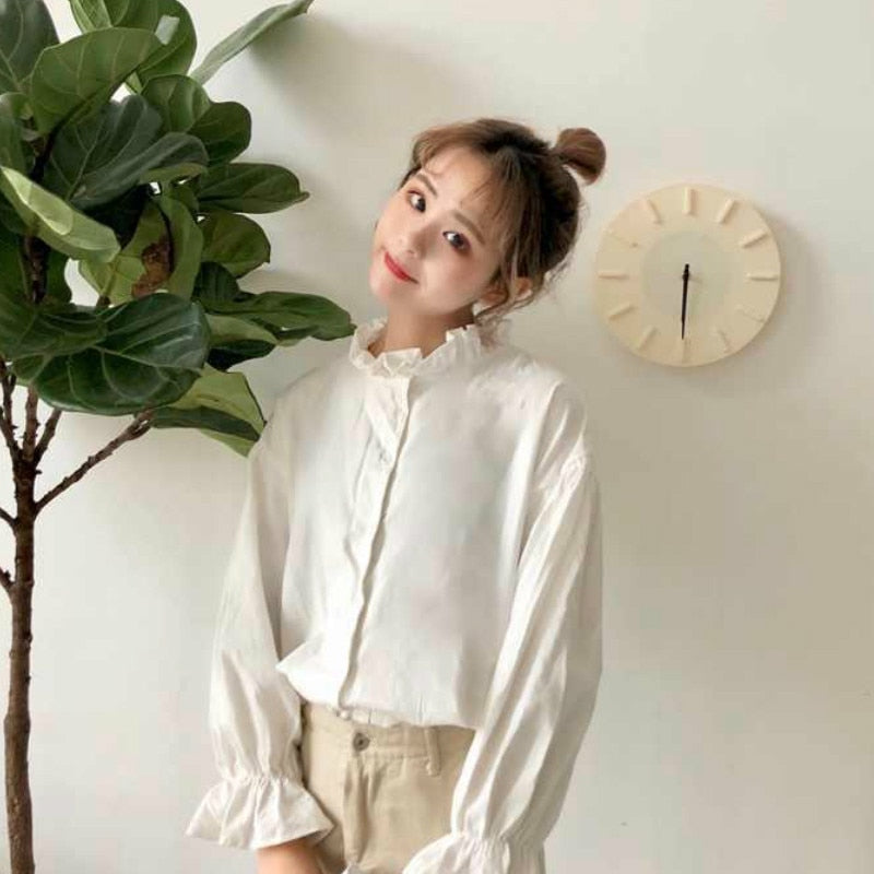 Put a twist on a classic look with this Ruffle Neck Blouse!