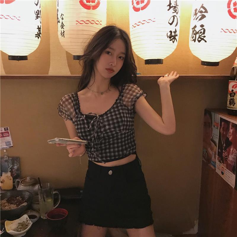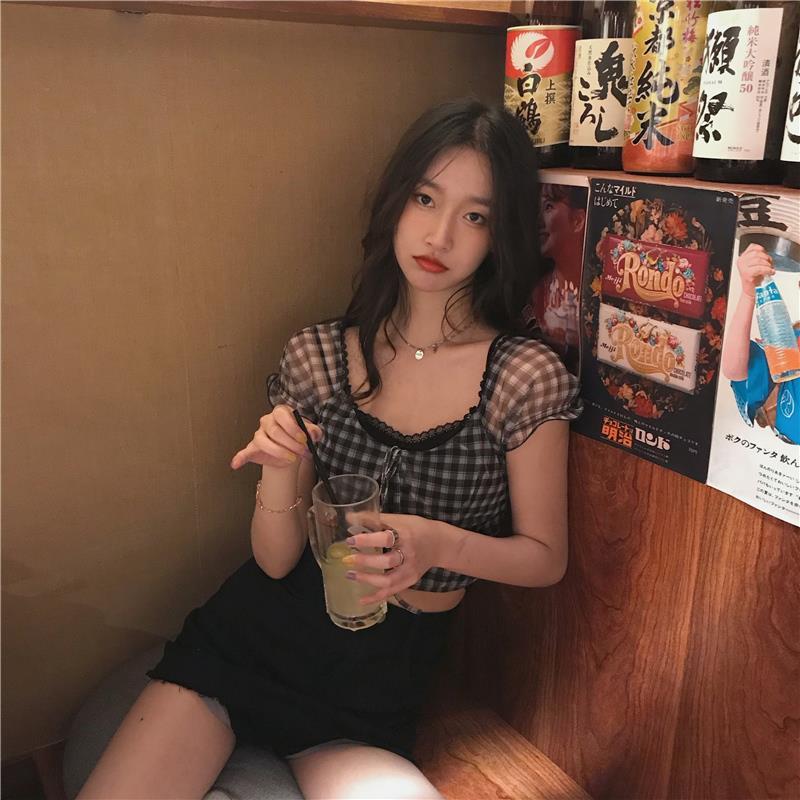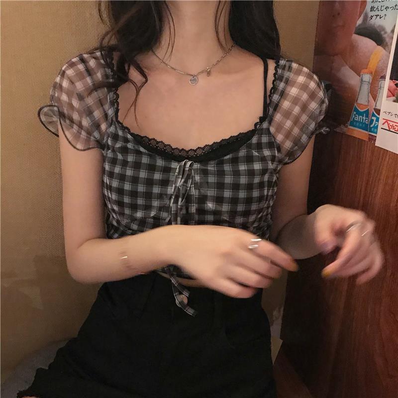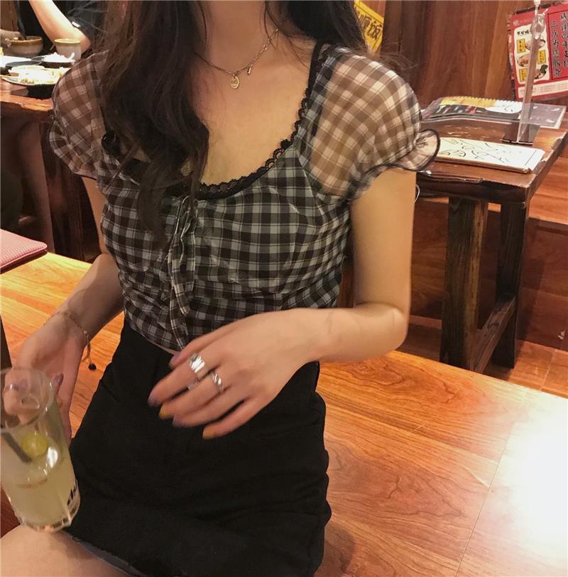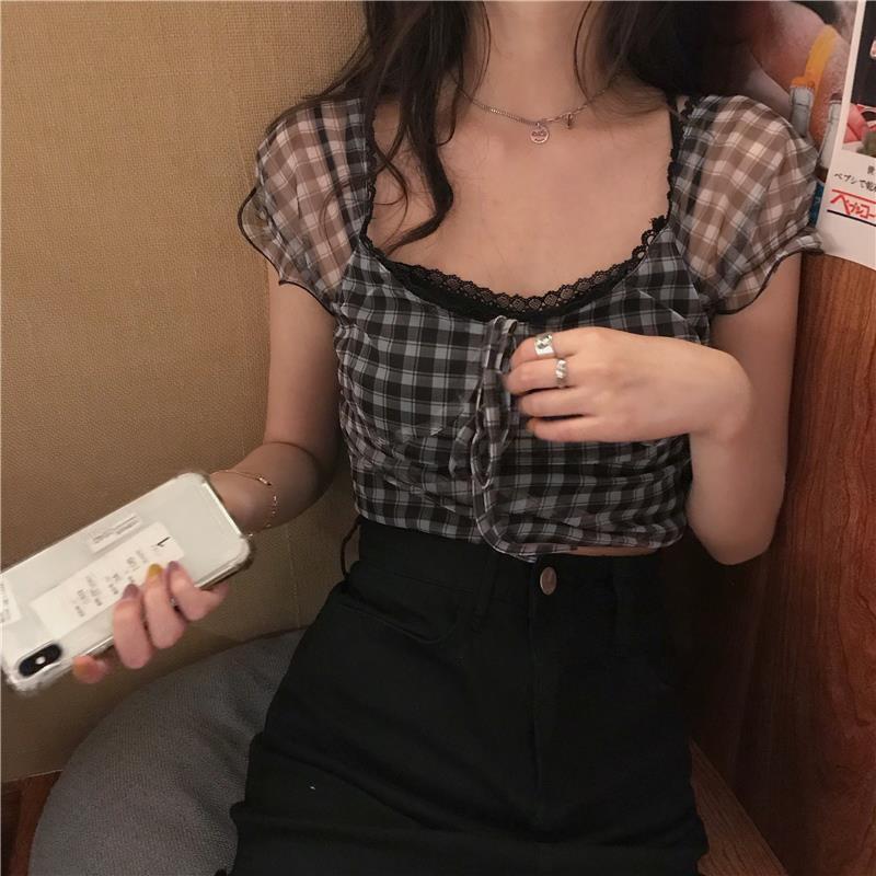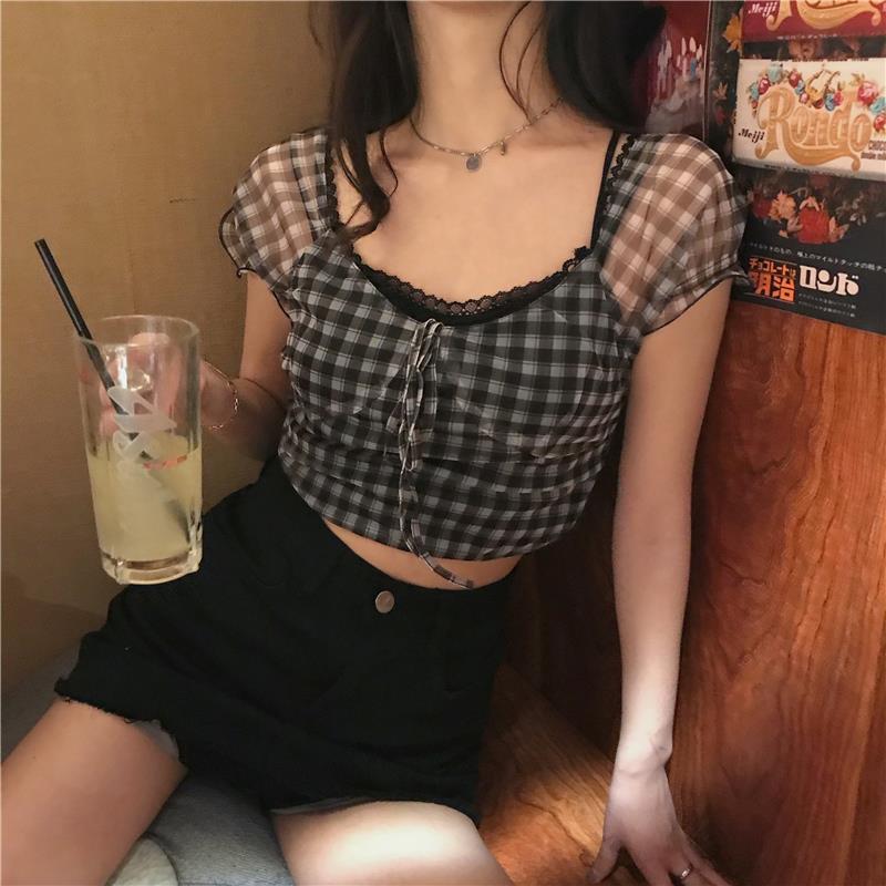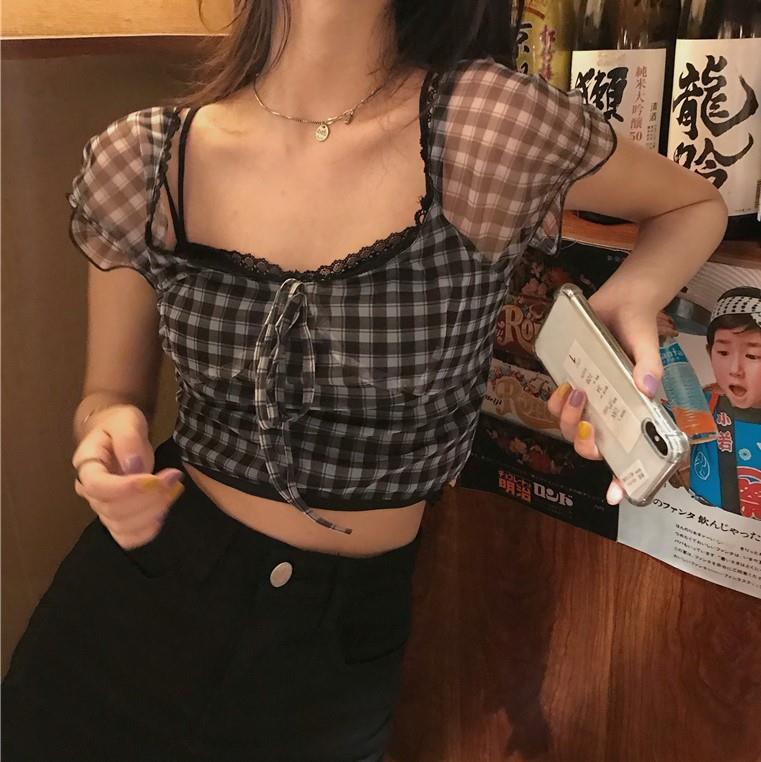 It's clear to see that you need this Sheer Sleeve Plaid Crop Top!