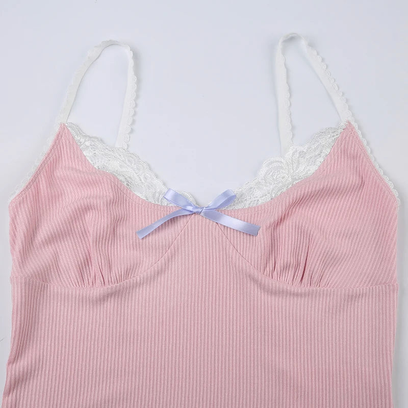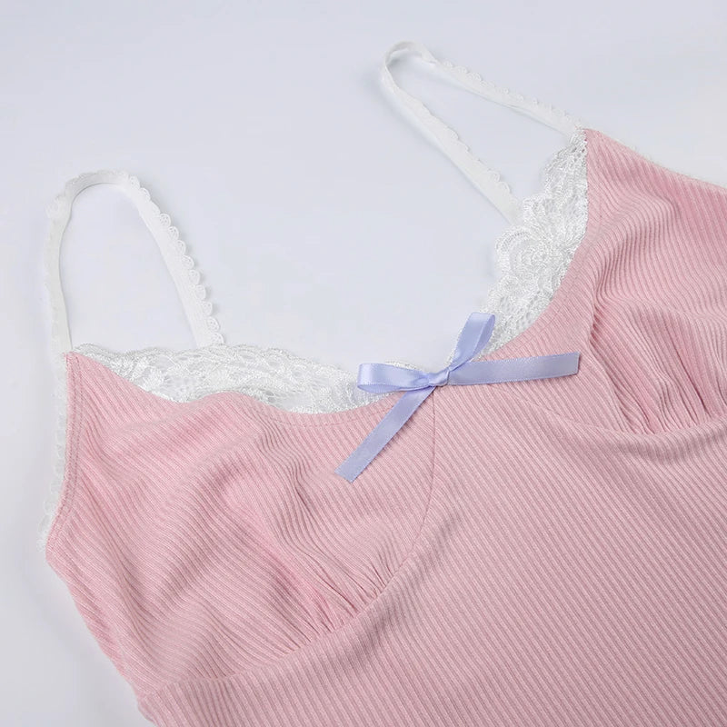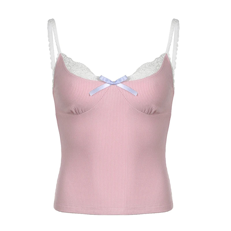 Add a touch of femininity to your wardrobe with our Super Sweet Bow Lace Cami. This cute cami features a delicate lace neckline and a darling purple bow in the center. Perfect for adding a girly touch to any outfit 💜🎀!